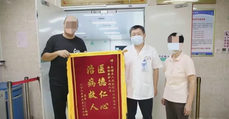 10月5日,完成手术解救后妙手回春的何女士,挑升与家属前去大埔县东说念主民病院,为张建周奉上锦旗致谢,“感谢医师对我的救命之恩!”
